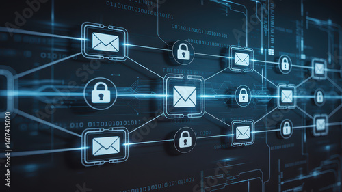 digital, network, electronic mail, security, padlock, encryption, communication, technology, futuristic, abstract, cyber, protection, datum, privacy, cyberspace, information, secure, glowing, blue, circuit, system, connection, interface, virtual, background, web, online, safety, modern, innovation, electronic, visualisation, graphic, design, element, pattern, line, mail, message, lock, access, firewall, transfer, information technology, connectivity, defense