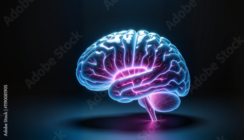 brain, ai, artificial, intelligence, neural, network, connection, glowing, neon, blue, purple, light, dark, background, metallic, texture, surface, high technology, detail, intricate, pathway, sharpened, futuristic, sleek, photorealistic, illumination, design, digital, science, technology, cyber, circuit, innovation, imagery, electrical, concept, visualisation, creative, abstract, symbol, shape, modern, graphic, representation, light, energy
