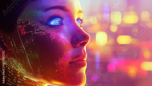 artificial intelligence, technology, ai, futuristic, datum, innovation, brain, computing, connection, mind, network, robotic, science fiction, synthetic, human face, abstract, portrait, vision, intelligence, advanced, system, modern, vibrant, colourful, glowing, creative, surveillance, security, identification, biometric, digital artwork