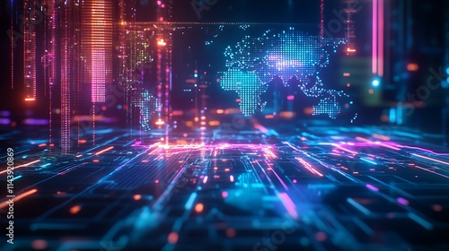 global, network, technology, digital, datum, earth, map, cyberspace, connection, communication, futuristic, abstract, line, light, glowing, neon, vibrant, colours, information, innovation, progress, science, modern, design, background, graphic, illustration, concept, visualisation, energy, flow, structure, system, circuit, electric, pixel, space, virtual, reality, wireframe, grid, pattern, surface, texture, art