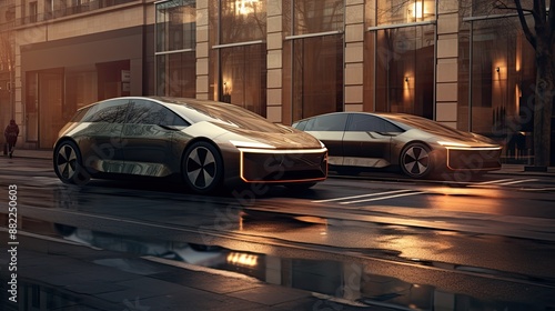 Futuristic Electric Cars in City Setting.