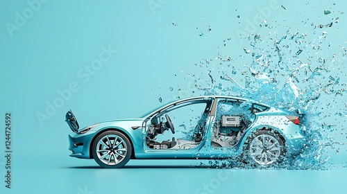 electric, vehicle, splash, clean, blue, energy, futuristic, design, car, automobile, transportation, motion, speed, dynamic, power, movement, technology, innovation, environmentally friendly, sustainability, renewal, environment, nature, abstract, digital, render, three-dimensional, modern, sleek, elegant, stylish, advanced, efficient, battery, charge, progress, future, commute