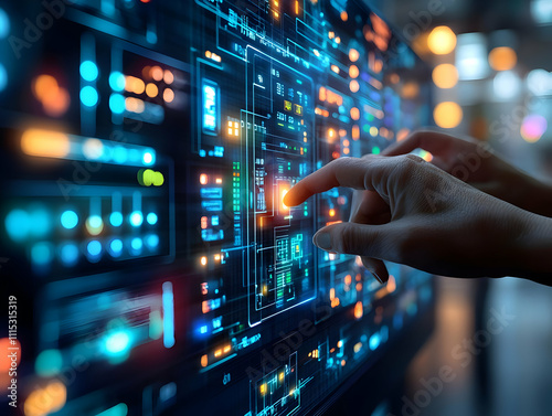 Futuristic Energy Efficient Lighting System Adjustment Teen Parent Interaction 3D Macro
