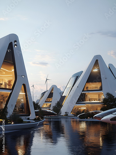 futuristic, housing estate, advanced technology, solar panel, green energy, modern, technology, sustainable, environmentally friendly, urban living, innovation, contemporary, minimalistic, high technology, automation