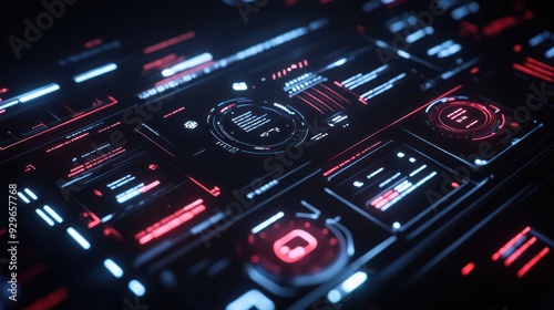 Futuristic Interface Design with Glowing Red and Blue Elements