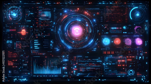 Futuristic Interface with Glowing Blue and Red Lights - Abstract Background