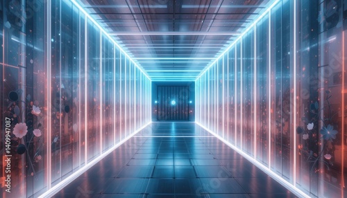 Futuristic light corridor design modern architecture exhibition digital art showcase urban environment wide angle illumination and perspective exploration