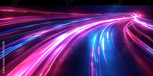 Futuristic light trails on a dark backdrop, ideal for banners, flyers, and posters.