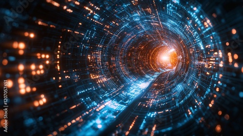 Futuristic light tunnel experience digital realm digital art virtual environment abstract viewpoint innovation concept