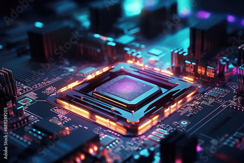 microchip, processor, circuit board, technology, futuristic, computer hardware, integrated circuit, data processing, motherboard, computing, semiconductor, electronic, central processing unit, computer chip, hardware, system, digital, innovation, electrical, network, information technology, pcb, macro, closeup, silicon, microelectronics, connectivity, component, cyber, ai, artificial intelligence, automation, design, development, engineering, glowing, information, neon, power, science, speed, blue, advanced, performance, hi-res