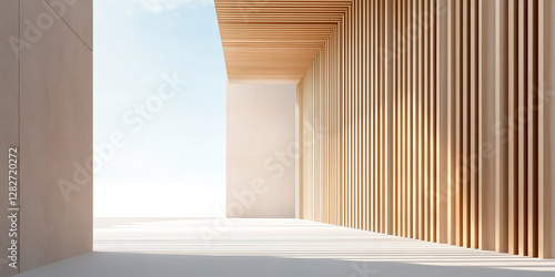 architecture, minimalism, modern, futurism, gold, car park, sky, line, wood, white, ground, empty, wall, nobody, abstract, square, simple, concrete, future, background, platform, business, design, light, luxury, blank space, room, three-dimensional, hall, door, open, house, building, construction, frame, floor, concept, illustration, wooden