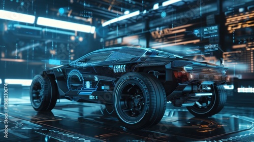 Futuristic modern vehicle with digital graphic user interface technology. Generated AI image