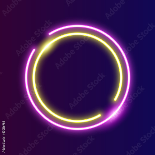 Futuristic Neon circle frame border. yellow and pink neon glowing background