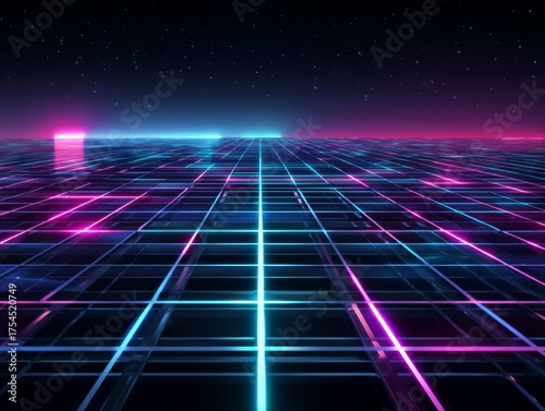 grid, neon, landscape, digital, futuristic, glowing, line, colourful, design, technology, abstract, light, night, texture, geometric, vibrant, illumination, visual, art, background, infinite, perspective, modern, space, cyber, gradient, star, shiny, energy, beauty, innovation, bright, science, virtual, horizon, creative, mesh, display, pattern, aesthetic, reflections, fantasy, scene, aglow, imagery, dynamic, artistry