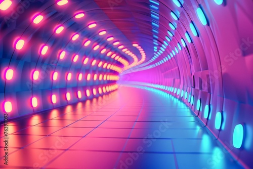 Futuristic Neon Light Tunnel with Vibrant Pink and Blue Colors, Abstract Background for Technology Concept