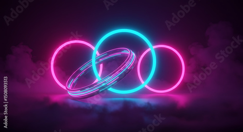 Futuristic Neon Rings Glowing Circles Abstract Background Pink and Cyan Lights 3D Render