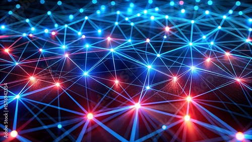 futuristic, network, grid, glowing, red, blue, tech, technology, digital, modern, design, graphic, illustration, art, visual, concept, cyber, secure, datum, connection, cyberspace, web, computer, system, node, server, cloud, big, ai, artificial, intelligence, machine, learning, automation, smart, processing, algorithm, visualisation, complex, structure