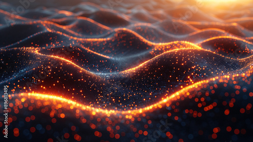 Futuristic network technology concept featuring interconnected digital lines and nodes, symbolizing communication, data exchange, and advanced technology in a vibrant digital landscape