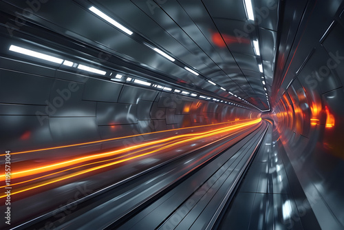 Futuristic Night Train in Tunnel To convey a sense of fastpaced movement technology and urban life in a modern and artistic way