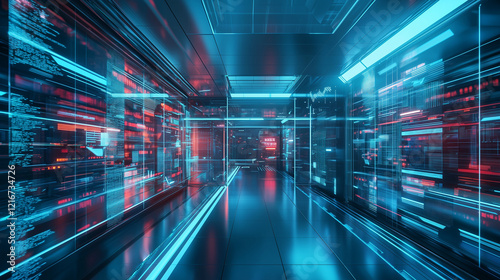 Futuristic Office Space with Transparent Walls, Advanced Technology, and Holographic Displays