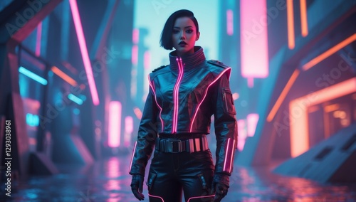 Futuristic Rebel Full-Body Portrait in Neon Dreams