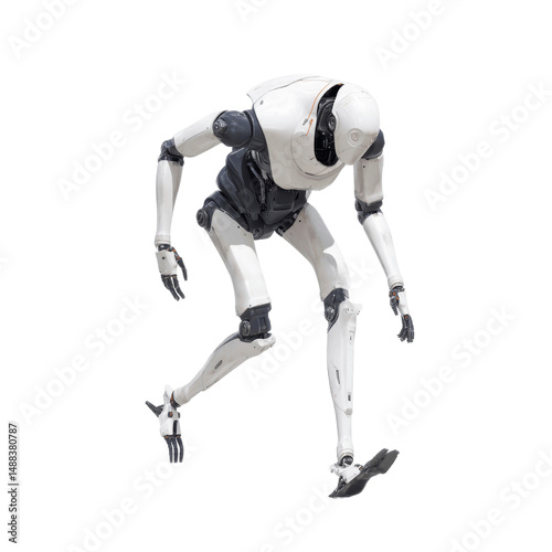 robot, android, artificial, intelligence, ai, futuristic, technology, cyborg, science, fiction, innovation, future, machine, mechanism, falling, stumble, bankruptcy, malfunction, error, breakdown, damage, broken, repair, maintenance, white, black, metallic, digital, automation, robotic, android, humanlike, computer, graphic, three-dimensional, rendering, model, isolated, background, green, screen, studio, shot, full, body