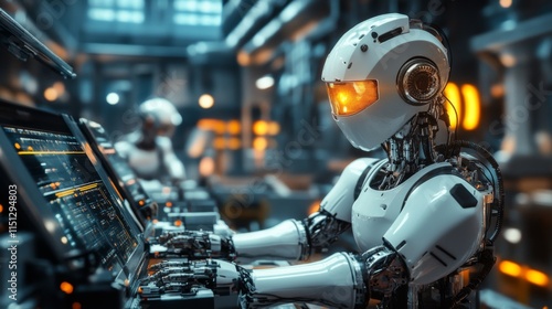 robot, robot, automation, factory, industry, industrial, manufacturing, technology, future, innovation, machine, machinery, artificial, intelligence, ai, digital, automatic, production, work, men at work, system, process, control, panel, screen, computer, futuristic, modern, advanced, engineering, science, development, progress, smart, efficient, automated, robotic, mechanic, hardware, software, line, assembly, operator, monitor