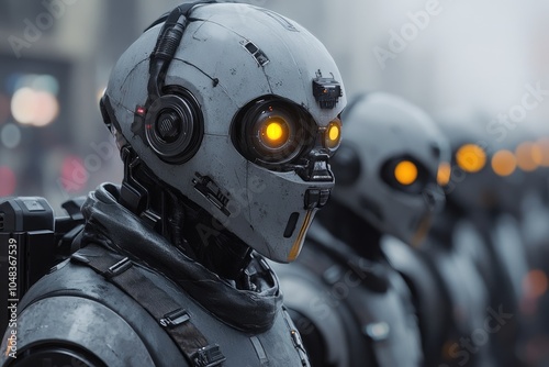 robot, robot, soldier, soldier, futuristic, future, technology, science fiction, science fiction, city, urban, military, army, war, weapon, weapon, artificial intelligence, ai, cyborg, android, machine, machine, digital, robotic, helmet, armoring, power, strength, danger, threat, control, surveillance, invasion, battle, conflict, illustration