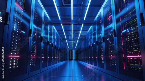 Futuristic Server Room, Digital Technology and Data Center Infrastructure