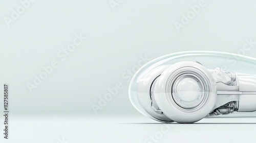 Futuristic sleek vehicle design minimalistic and smooth style with soft pastel tones perfect for technological advancements concept automotive innovation stock photography usage, space for text