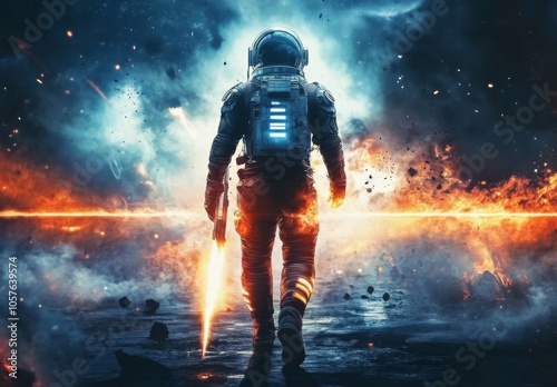 science fiction, scientific, science, fiction, pilot, astronaut, aircraft, spacecraft, war, battlefield, battle, flames, theme, field, fire, force, game, gamer, video game, graphic, space, suit, fantasy, futuristic, realistic, character, costume, outer, adventure, helmet, galaxy, discovery, concept, travel, cosmos, universe, design, planet, star, weapon, celestial, glow, light