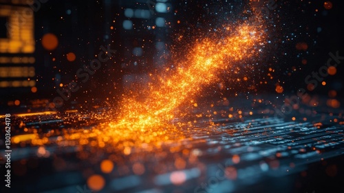 Futuristic spark and glowing effect streaming across a high-tech keyboard. Generative AI