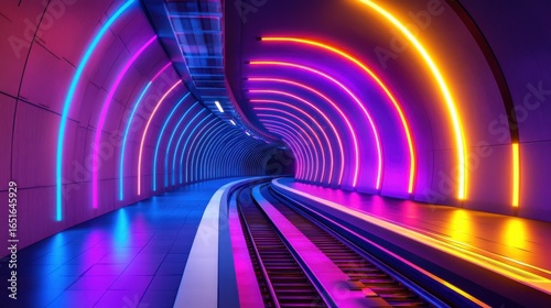 subway, station, track, design, glowing, light, minimal, line, dark, tunnel, futuristic, architecture, modern, transport, underground, vibrant, illumination, pathway, corridor, urban, technology, motion, travel, energy, dynamic, scene, perspective, rythm, pattern, colours, aesthetic, visual, style, atmosphere, journey, space, environment, transit, rail, abstract, creative, artistic