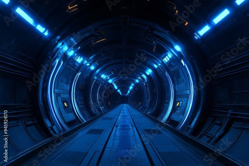 futuristic, tunnel, blue, light, metal, wall, dark, abstract, technology, science fiction, space, interior, design, modern, background, graphic, pattern, three-dimensional, render, concept, digital artwork, illustration, neon, glow, bright, corridor, hallway, pathway, journey, travel, explore, future, innovation, progress, science, fiction, fantasy, dream, imagination, surreal, mystery, unknown, hypnotic, hallucinogen, geometric, shape