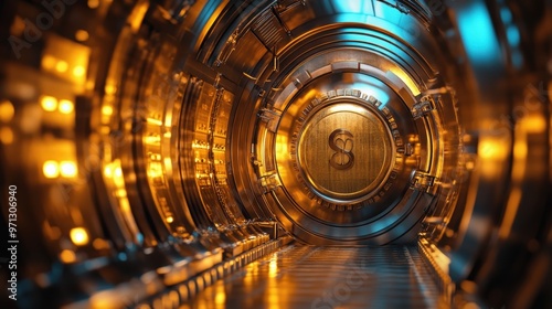 reflective, cyan, fiction, glowing, metallic, futuristic, three-dimensional, light, science, warm, shiny, steel, structure, gold, tunnel, rendering, circular, industrial, interior, gold, bronze, light, technology, space, modern, abstract, digital, orange, dark, blue, design, metal, pattern, bright, architecture