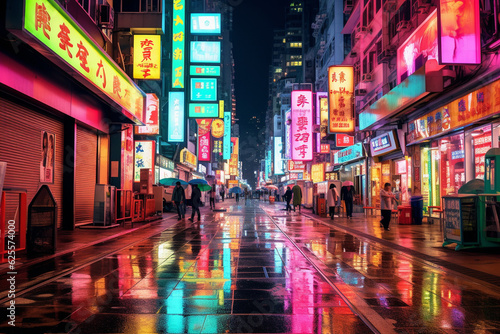 Futuristic Unidentified people walking on the street in Hong Kong at night.