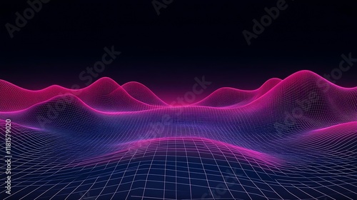 futuristic, virtual, neon, waveform, grid, design, night sky, digital, abstract, modern, technology, science fiction, cyberspace, glowing, line, colourful, surreal, energetic, horizon, three-dimensional, flow, wave, radiant, bright, artistic, landscape, vibrant, tech, motion, innovation, contemporary, digital artwork, dynamic, simulation, visual, creative, abstract design, electronic, datum, perspective
