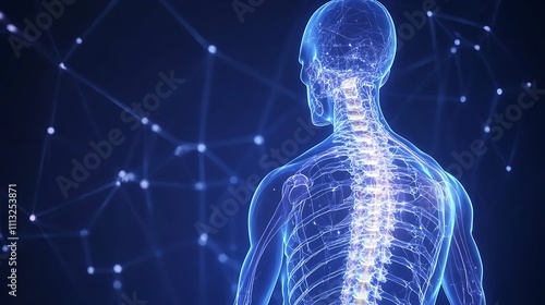 Futuristic Visualization of the Human Spine and Nervous System with a Digital Glow