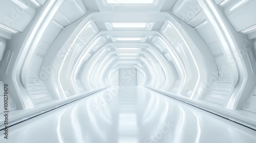 futuristic, corridor, hallway, white, architecture, space, science fiction, abstract, modern, interior, design, technology, light, three-dimensional, render, room, glow, clean, shiny, sterile, tunnel, bright, empty, abstract background