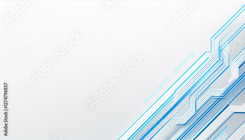 Futuristic white technology background with blue neon lines. Glowing vector banner design. Generated image
