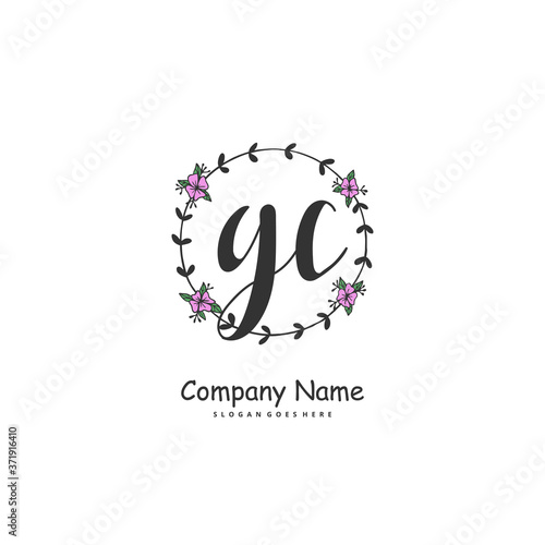 G C GC Initial handwriting and signature logo design with circle. Beautiful design handwritten logo for fashion, team, wedding, luxury logo.