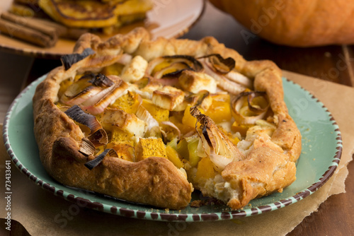 Galette with leeks, pumpkin and feta