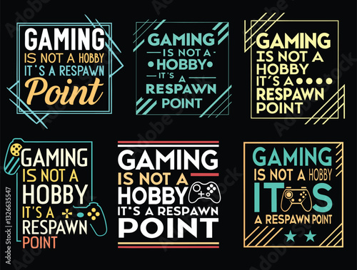 gaming, gamer, hobby, point, quote, quote, design, design, phrase, typography, graphic, vector, illustration, text, style, style, font, font, colours, colours, black, white, yellow, gold, pink, red, orange, cyan, teal, turquoise, blue, green, controller, game, game, level, life, passion, lifestyle, player, player, fun, enjoyment, art, artwork
