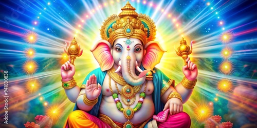 Ganesha, Lord of Beginnings, Digital Painting, Colorful Deity, Radiant Aura, Ganesh, Hindu