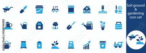 Garden icon set. Containing plant, flowers, trees, watering can, fence, cultivate and gardening icons. Solid icon collection. Vector illustration