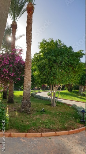 garden, park, tree, tree, nature, architecture, summer, path, landscape, grass, green, house, building, palm, home, travel, beautiful, road, outdoors, city, sidewalk, sky
