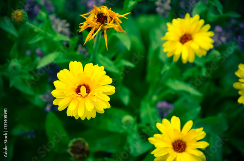 Garden of calendulas flowers at summer