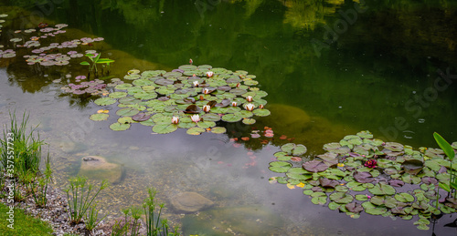 garden pond with water lilies in South Tyrol, northern Italy,Europe