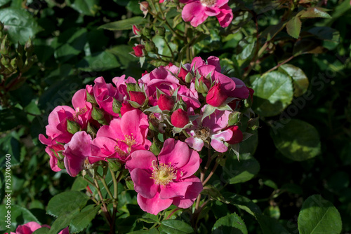 garden roses, on a green background of their foliage