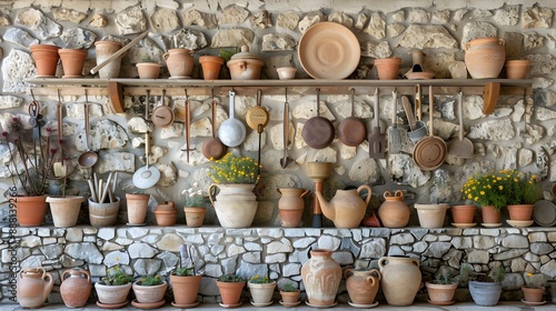Gardening - Set Of Tools For Gardener And Flowerpots In Sunny Garden